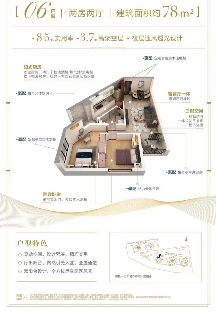 户户双阳台设计 通风采光一流,座北向南 明亮通风, 园林设计 拥抱四季园景。