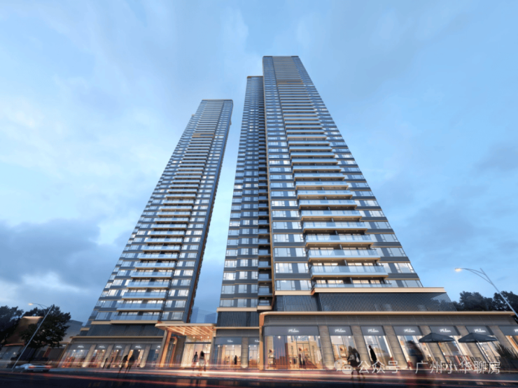 ② 高层住宅:注重建筑的温度,善用线条提升楼体挺拔感,以约 150m 的高度对望广州塔