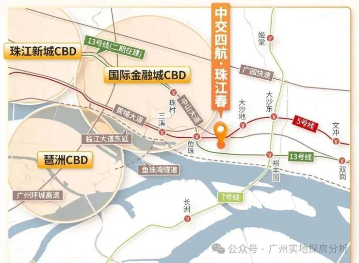 项目距离地铁5号线鱼珠站和大沙地站双地铁站约800米,目前就能通过地铁5号线直达金融城、珠江新城,未来13号线二期开通后,也通过鱼珠站直抵珠江新城。