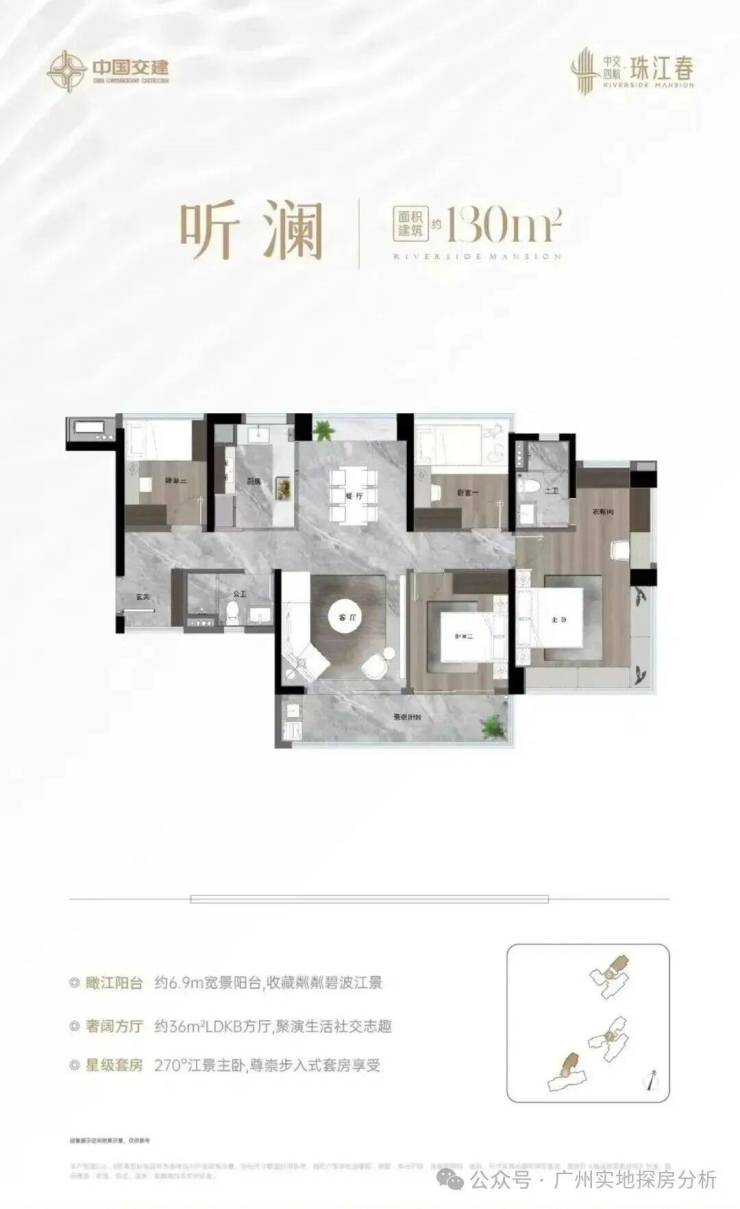 项目首开3地块,共3栋楼。面积130-143-180平使用率超110%。其中6栋43层,7栋47层,8栋45层。6#和7#均为3梯4户8#为3梯3户,户型有130/143平的四房两卫、180平的四房三卫。6#130平B户型为西南向,8#的180平户型南向略略偏东。9#两梯两户大平层,整个项目最近珠江的。6#北侧的小山狮山公园。