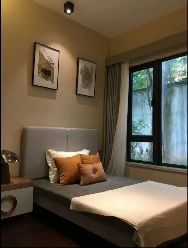 平层单位使用率自然就不如咬合复式高了,但因为同样拥有私家电梯厅和入户玄关,辅以大面积飘窗,整体的空间感尚可。