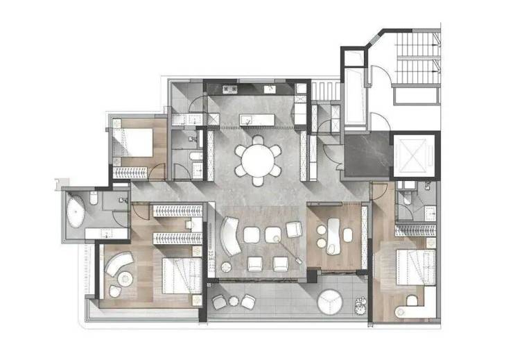 半定制硬装:针对203m2、246m2定制房间数量、功能落位及功能布局,满足不同家庭结构不同生命周期需求