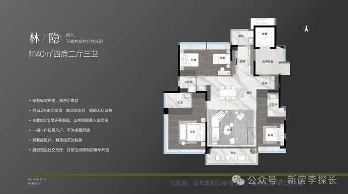 【林隐】建面约140㎡广州罕见一梯一户板式大平层,双主套,全明卫,南北双阳台