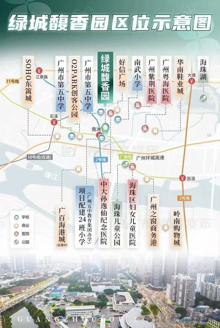 项目位处广佛线/2号线南洲站,双地铁上盖,你可以3站到客村,5站到珠江新城,7站到琶洲,8站通行万博/金融城/白鹅潭商圈。