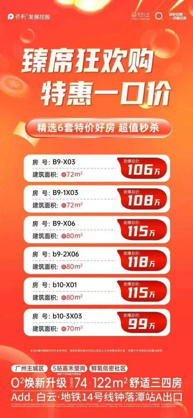 目前项目在售B1、B3、B4、B12栋,74-122㎡三至五房,近期加推了楼王B2栋和B6栋。主要的是新推的B2栋和B6栋选择会多一点,100万就可以上车。B10栋的新规产品也是目前的一大买点。详细销控和优惠政策可以添加微信详细了解。