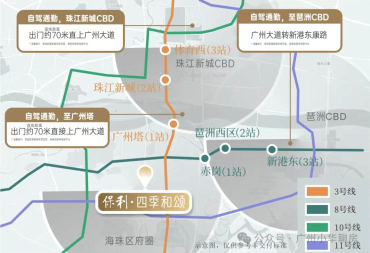 🚅交通:3/8/10/11号线4地铁交汇,1站广州塔,2站珠江新城,3站琶洲西区;出门即广州大道,畅达珠江新城,体育西,琶洲。