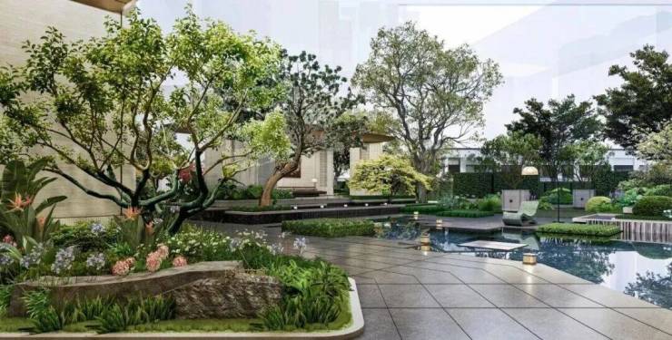 💎【社区迭代】复刻余荫山房设计的岭南园林,融入广雕、千年广绣、广府花窗设计,如广雕对景照壁源于余荫山房抽象龟纹石雕,寓长寿之意、镇宅安宁;广府花窗,寓意满堂富贵等,代表广府的美好祝愿