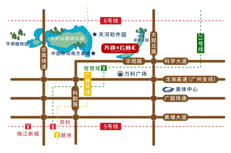天河云商汇,位居天河智慧城芯,南侧为占地7.5万㎡的万科广场。