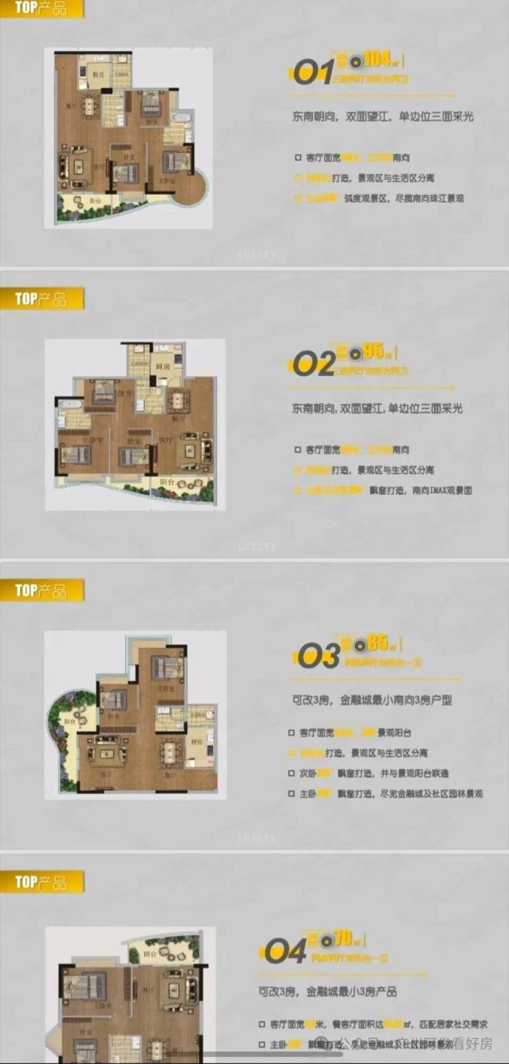 即买即入住,规避期房风险;户型涵盖70-206㎡二至五房,实用率87%,部分70㎡两房可改2+1空间,大户型采用270°环幕江景设计。