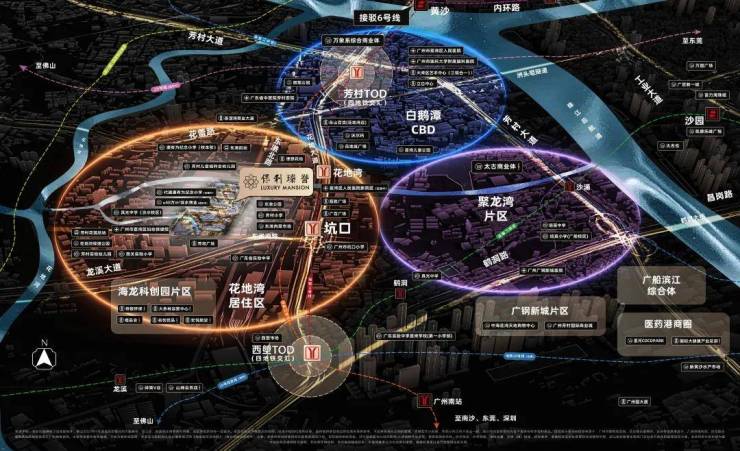 ◎花地湾居住区:大力推动产业科技互促双强,聚焦“广佛极点”科创中心功能定位。板块同步开发建设生活大城,承接产、商人群居住需求。