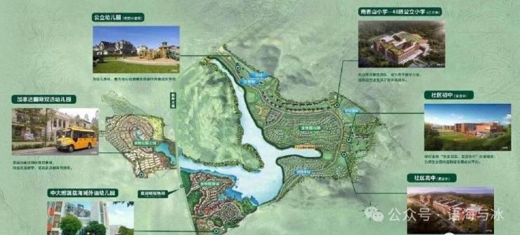 约4000亩湖山生活大盘,20万方社区生活配套,社区共有7所公私立学校,从幼儿园、小学、初中,再到高中,15年配套俱全。