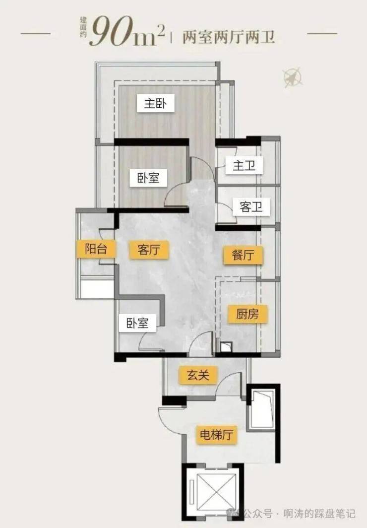 塔楼2T4设计,高25层,主推建面90、100平户型;