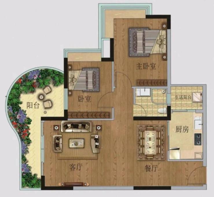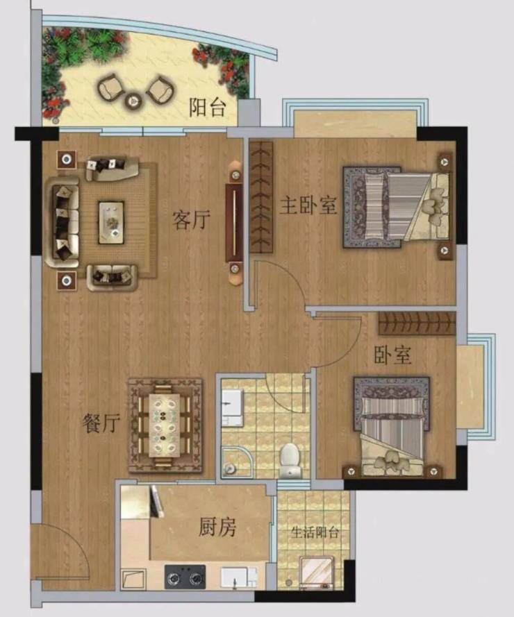 🅣🅞🅟03户型【82㎡2房1卫】南向园林景观