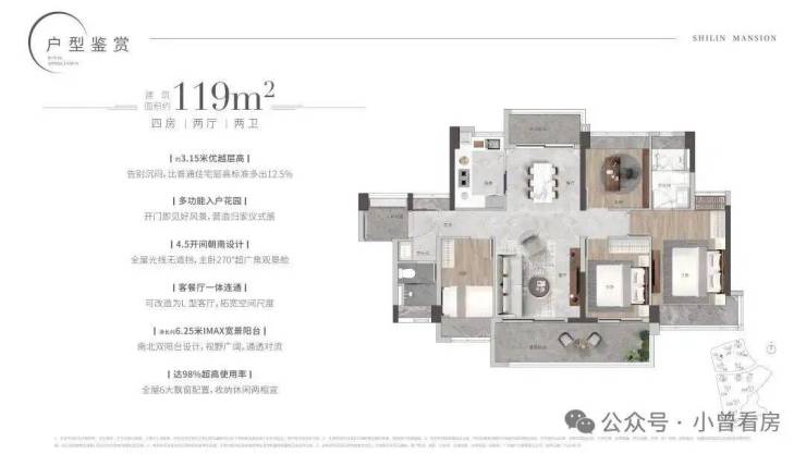 【119㎡四房二厅二卫】
