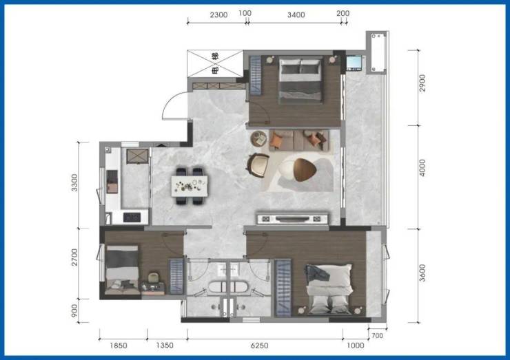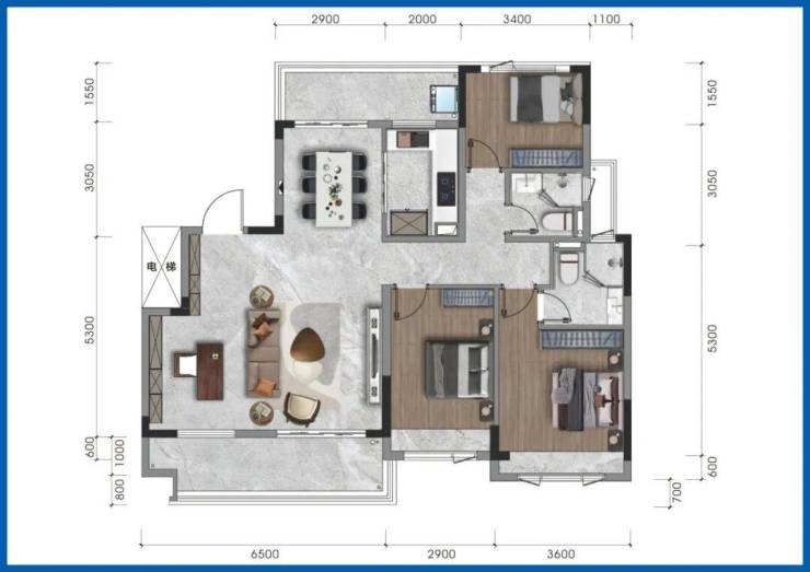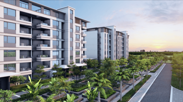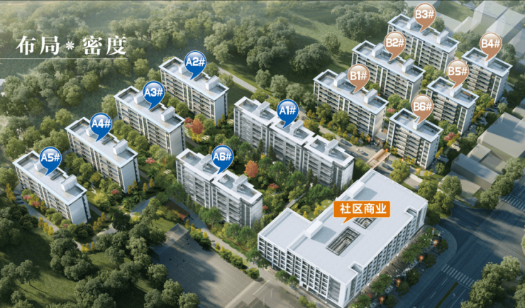 业态分布:12栋6层纯板式真洋房+1栋商业综合体约1.2万㎡