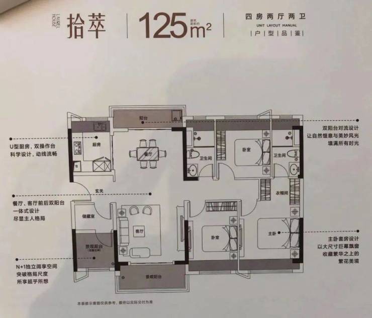 该户型是目前在售最大面积,主卧可以多做一个书房或婴儿房,勉强算4+1户型,主阳台没做到贯通次卧,目前特价天底层大概400万左右。