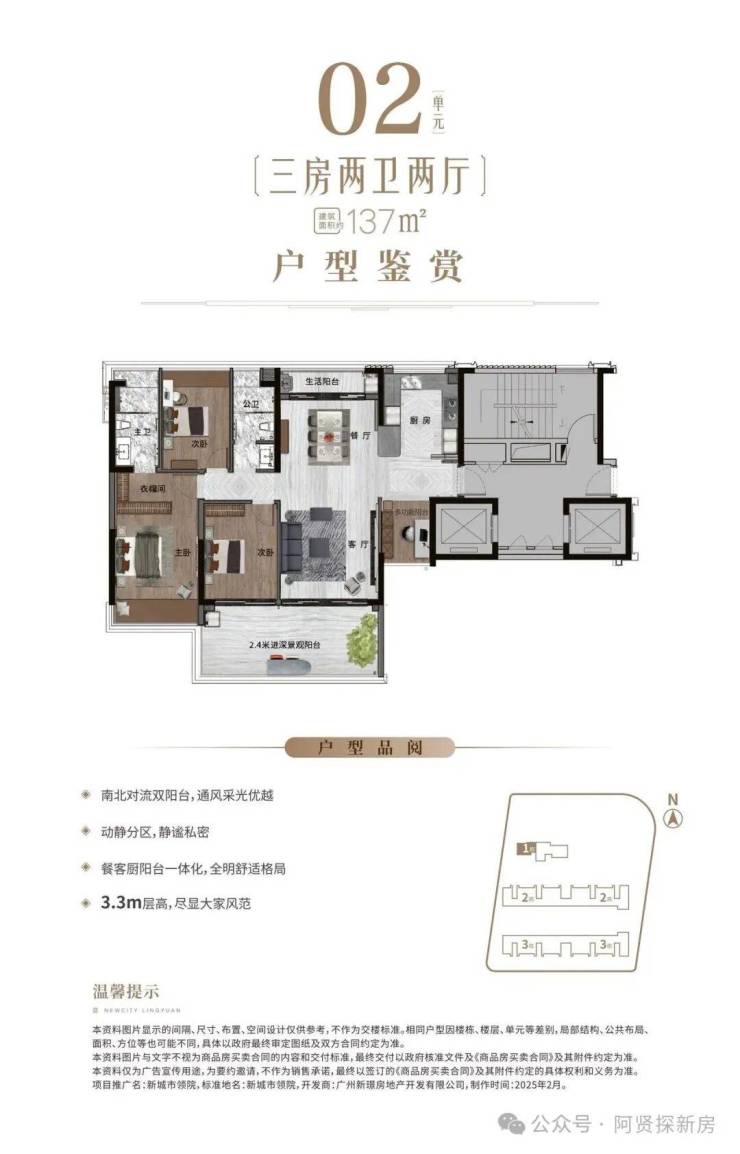 ◎02户型:建筑面积约137㎡舒阔三房。