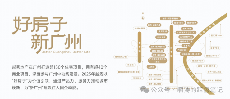 一城中轴半壁越秀,深度参与广州建设,曾开发目前售价约22万/㎡的豪宅群二沙岛/珠江新城CBD片区/琶洲CBD片区,越秀择址项目,与城市发展风口高度一致,开发一片成熟一片。