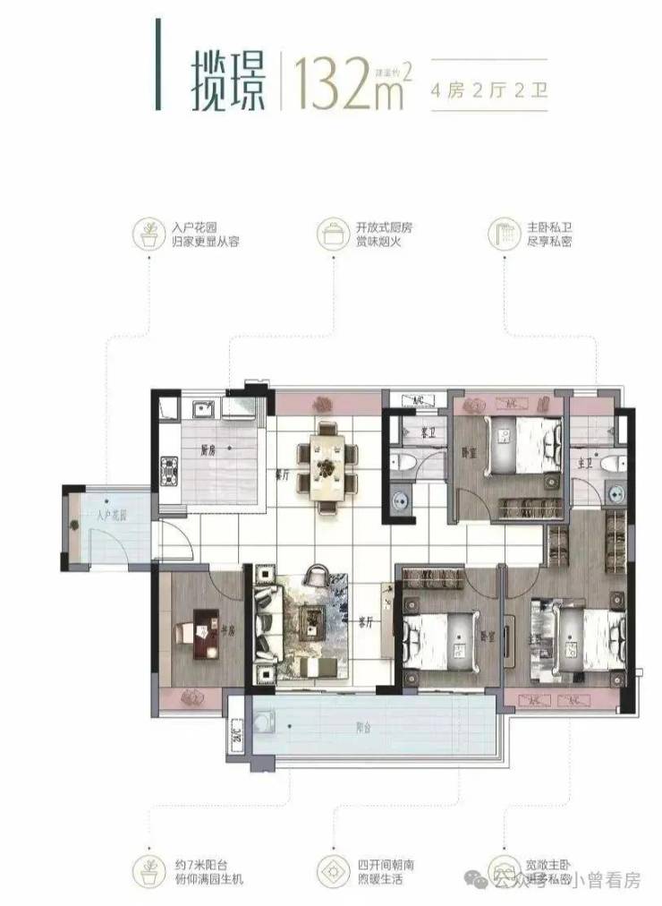 户型经典竖厅设计,动静区分离