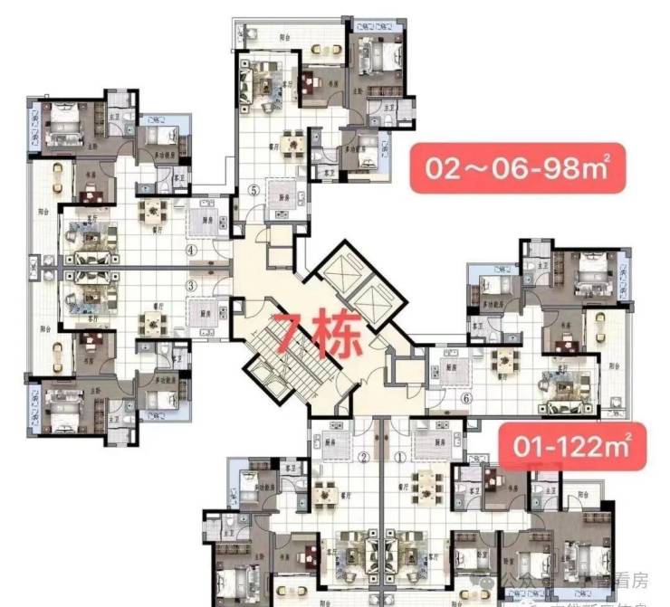 如建面约122平户型,除了卧室空间和独立卫浴,竟然还拥有阳台空间。