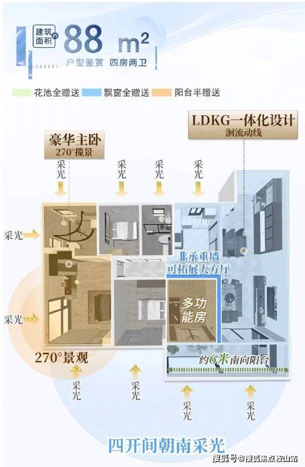 最高约120%使用率,约6.3米南向阳台, 豪华主卧套房+270°环幕全景窗,尺度堪比120平以上的大户型