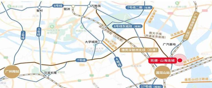 公共交通不算好,目前出行基本上靠自驾,最近的地铁4号线都要10公里,后续周边有规划地铁8号线东延线{莲花湾至万胜围}预计2027年底通车,全程8个站,通车后,莲花湾到海珠只要20分钟,且目前这边公交线路也比较少。