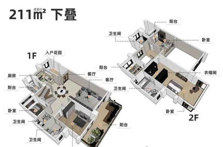 项目也在售建面约203-211㎡花园叠墅