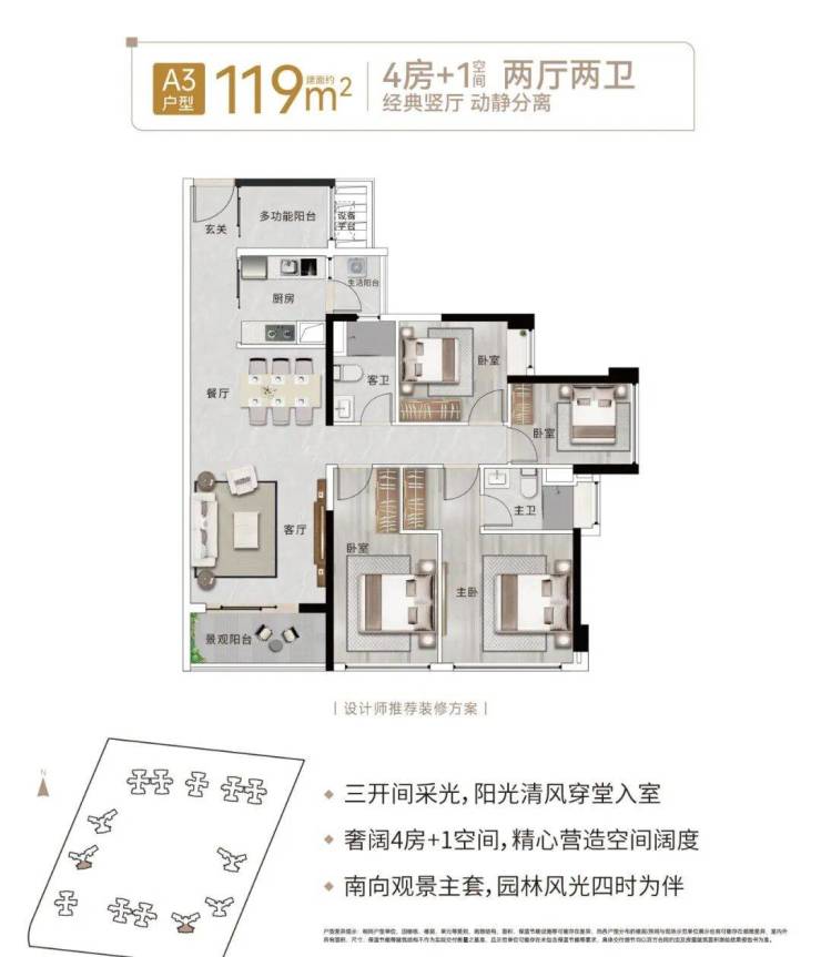 【119㎡:4房+1(空间)2厅2卫】(横厅)