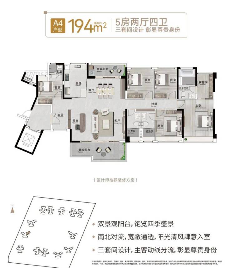 【194㎡:5房2厅4卫】(3套间)