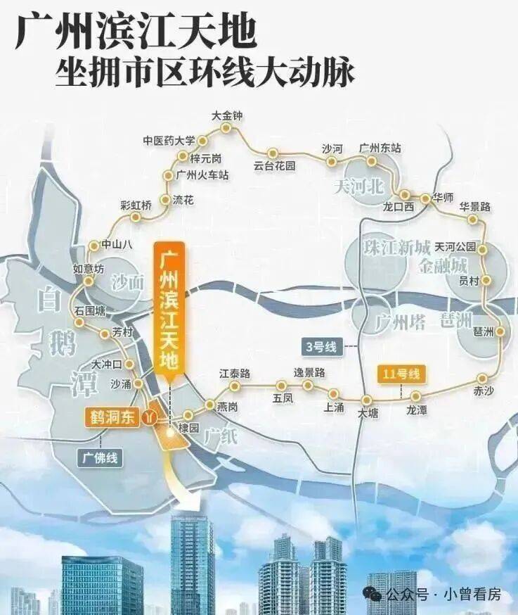 地铁方面:门口就是地铁11号线鹤洞东站,直线距离不到200米,规划中的佛山地铁11号线也紧挨项目南侧设站,通过广州首条环线11号线,可以速连珠金琶CBD,也可以在大湾区艺术中心,邂逅艺术的灵感,或漫步老西关永庆坊,感受百年烟火气,另外3站接驳22号线(在建中),未来南延段直通深圳。