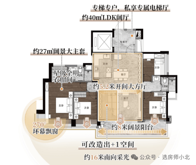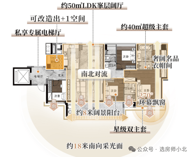 建面约143-181㎡户型为3梯3户设计(专梯专户)。