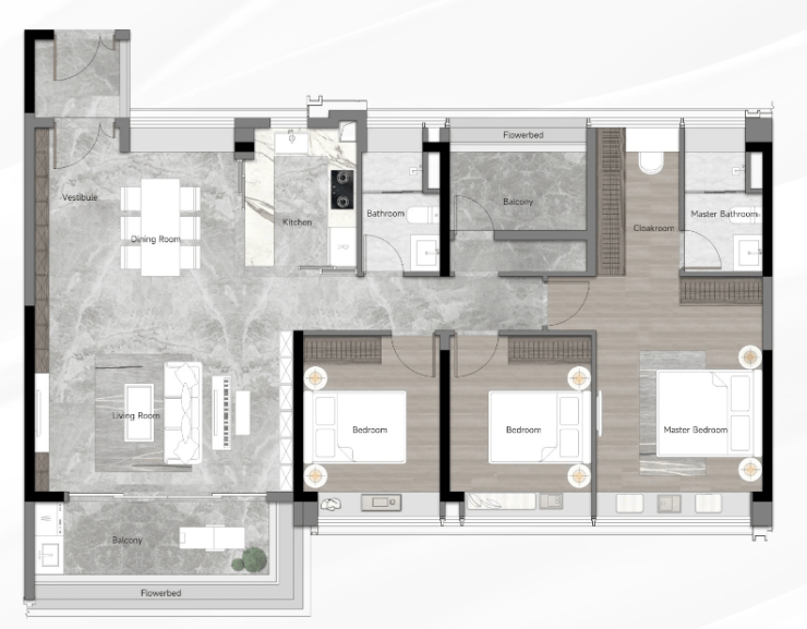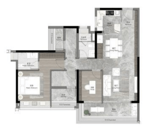 建面138㎡,4.5开间朝南,独立入户玄关,南北对流主卧套房。