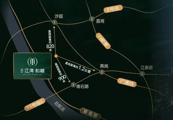 三地铁交汇,速达全城。距离换乘之王8号线沙园地铁站直线约800米;距离广佛线燕岗地铁站直线约1.2公里;距离首条环城线11号线南石头站直线约900米。