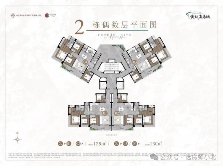 1-3栋,是高层住宅,主推建面约120-125㎡、约132-135㎡产品;