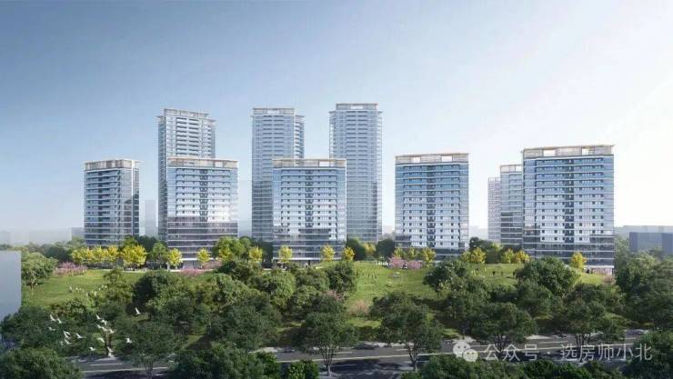 项目规划了12栋楼,其中有3栋31-32层的高层住宅,2T4,约368套货量;9栋16层高的小高层,2T2,约288套货量。
