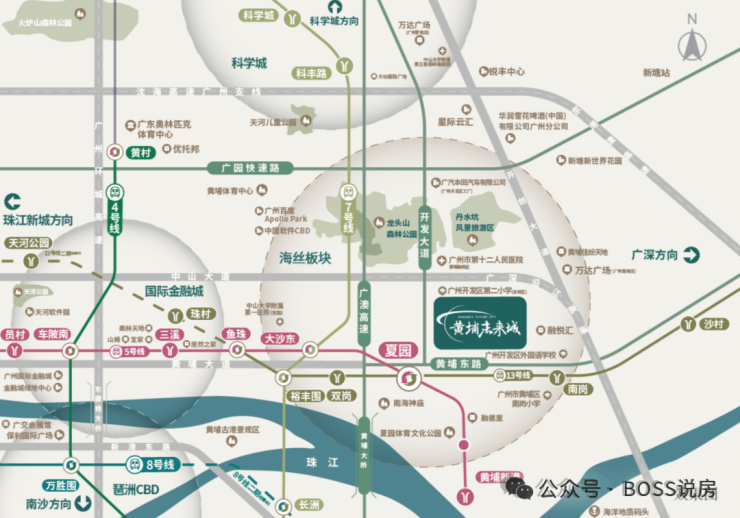 轨道交通:周边直线 3km 范围内有 5 个地铁站,分别是夏园、保盈大道、庙头、南岗、南海神庙,距离最近的地铁站是夏园站900米,地铁 5 号线和 13 号线双线交汇,可便捷通达珠江新城、金融城、琶洲等 CBD 区域
