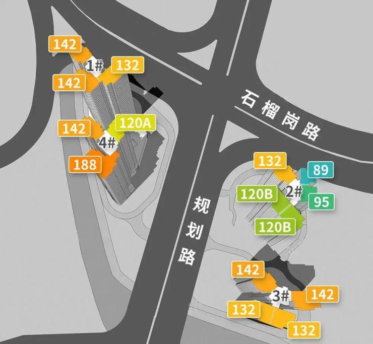 珑璟台为广州地铁独立开发,位于18号线龙潭站上盖,共分成两个地块,规划了4栋29-30层住宅,2号楼有两条梯腿(89-95的户型)为政府回购人才房,从沙盘上可以看出,1栋和4栋位于西边的地块,2栋和3栋位于东边的地块,两个地块之间规划了一条市政路,整体小区比较小,几乎没有花园,楼下三层是商业,四楼为架空层,未来电梯可直达地铁站,中间有一条市政道路,未来等红卫村旧改完成可直达琶洲,小区前面是海珠湖公园,北靠琶洲CBD,楼下是地铁站,去琶洲和珠城都很方便。