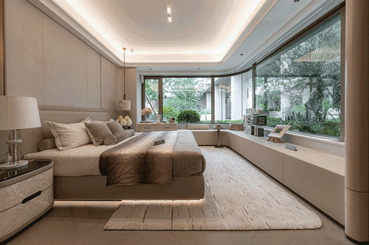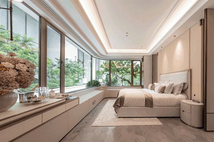 套房式的主卧通过L型大飘窗,实现270°环幕飘窗,保障了完整的观景界面、流畅性视野。