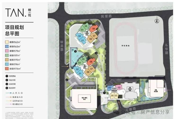 檀悦府,项目原先是水斗新围山嘴头工业区城市更新,总占地面积约1.6万㎡,总建筑面积约19万㎡,计容建筑面积约14.1万㎡,容积率8.3,绿化率40.12%,共由4栋32-47层高住宅+1栋33层办公组成,其中1栋1单元办公33F,1栋2/3单元商品房47F,1栋4单元住宅32F,1栋5单元住宅46F,2栋配建1所6班制幼儿园。