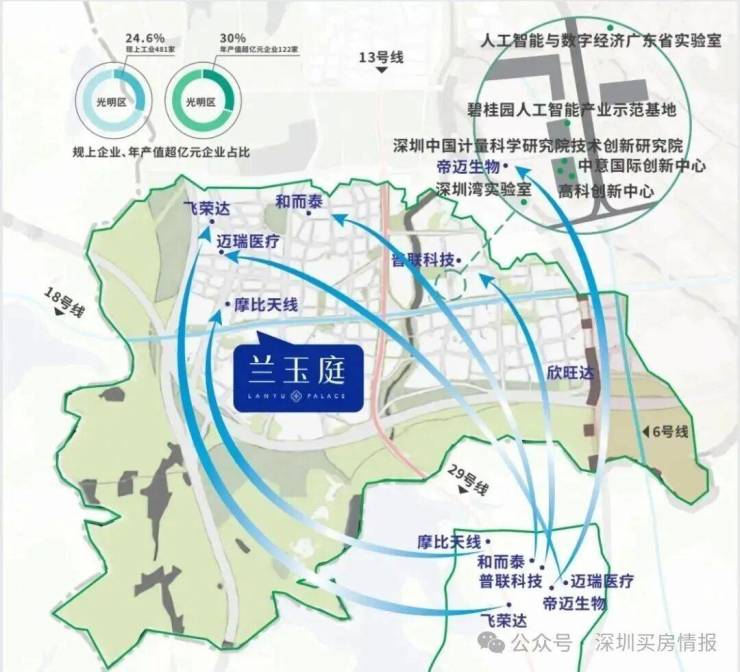 片区内吸引了迈瑞医疗、深圳湾实验室、普联科技、和而泰等龙头企业集聚。汇聚约122家超亿元产值企业,磁吸近十万高精尖科技人才持续涌入,高阶圈层聚首,共鸣峯层生活。
