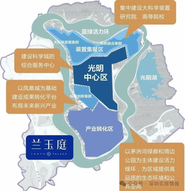 光明科学城占据广深港科技创新走廊重要节点,将建设成世界一流科学城和深圳北部中心,定位为大湾区综合性国家科学中心先行启动区,打造“中国新硅谷”。项目傲踞光明科学城南部,未来一片光明。