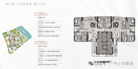 户型:建面约233-285㎡四至五房,东向/东南向一线望江,极致3.4-3.6m层高