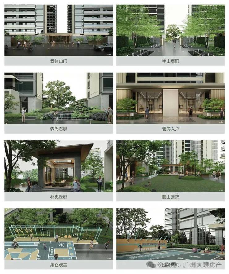 项目园林以“一轴八苑”的布局打造,人行主入口两侧为礼仪中轴和艺术水景,与云山互为呼应。园内设有林泉会客厅、休闲平台、儿童游乐园等,为社区全年龄段的业主提供会客社交、休闲娱乐、邻里交流等各种的需求。
