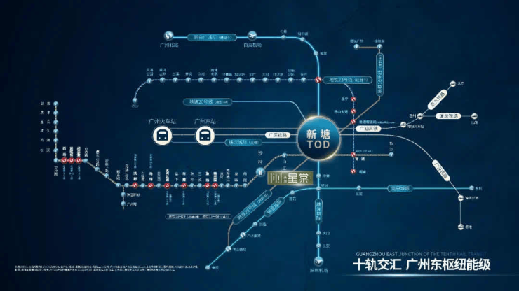 项目雄踞广州东进战略要冲,坐拥新塘TOD枢纽核心区位,扼守东江新城千亿级旧改门户。与老黄埔中心区仅一站之隔,至珠江新城约34公里(车程40分钟),三大高速动脉无缝衔接黄埔天河双城繁华。
