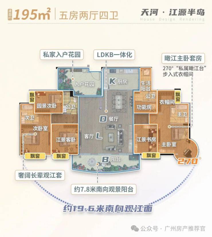 • 五开间南向采光,270°景观阳台