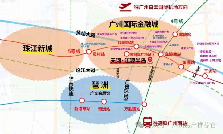 珠江新城、广州国际金融城和琶洲