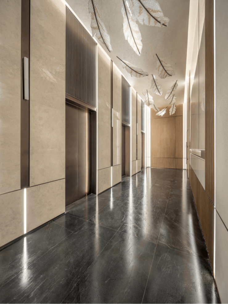广州东塔同款高速电梯,速度超1秒1层,业主出行无需久候。而奢阔精装的电梯空间,则让归家的每一步,都满是舒心与惬意。