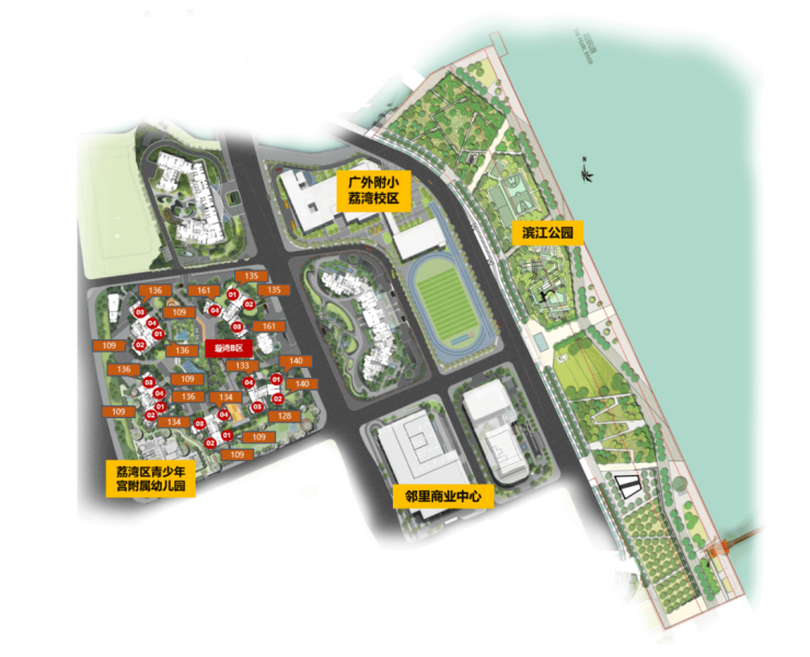 配建广外附小(30班)现已开学,广外附属荔湾小学是广外在荔湾区的第一所公办学校,是荔湾区政府与广东外语外贸大学合作创办的高起点、高品质、现代化区属公办小学。