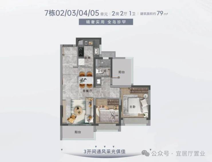 格局:南北对流、5.8 米宽景阳台、主卧套间、U 型厨房