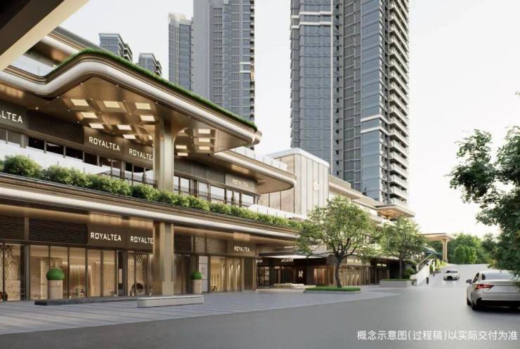 3. 番外集商业体系:番禺首个立体花园街区,建筑主动内缩退让,预留充足外摆空间与街角广场,由越秀社商统筹运营,兼具高级感与烟火气,日常购物、休闲娱乐下楼即享,让改善生活更具便捷度与质感。